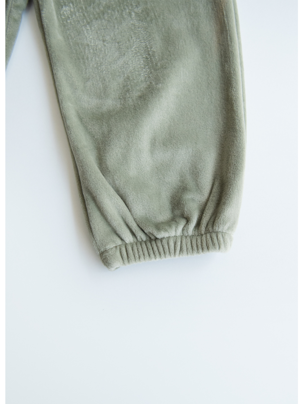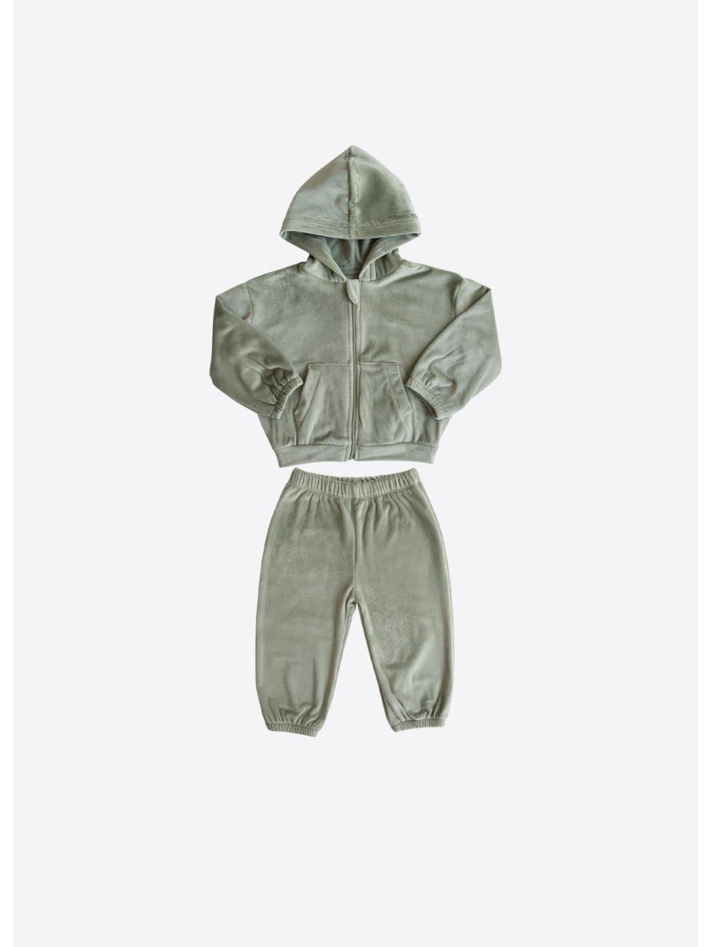 Sada obsahuje mikinu s dlouhým rukávem a kalhoty, obě z měkkého sametu (kadife) s jemným jednobarevným designem a příjemným materiálem šetrným k dětské pokožce.