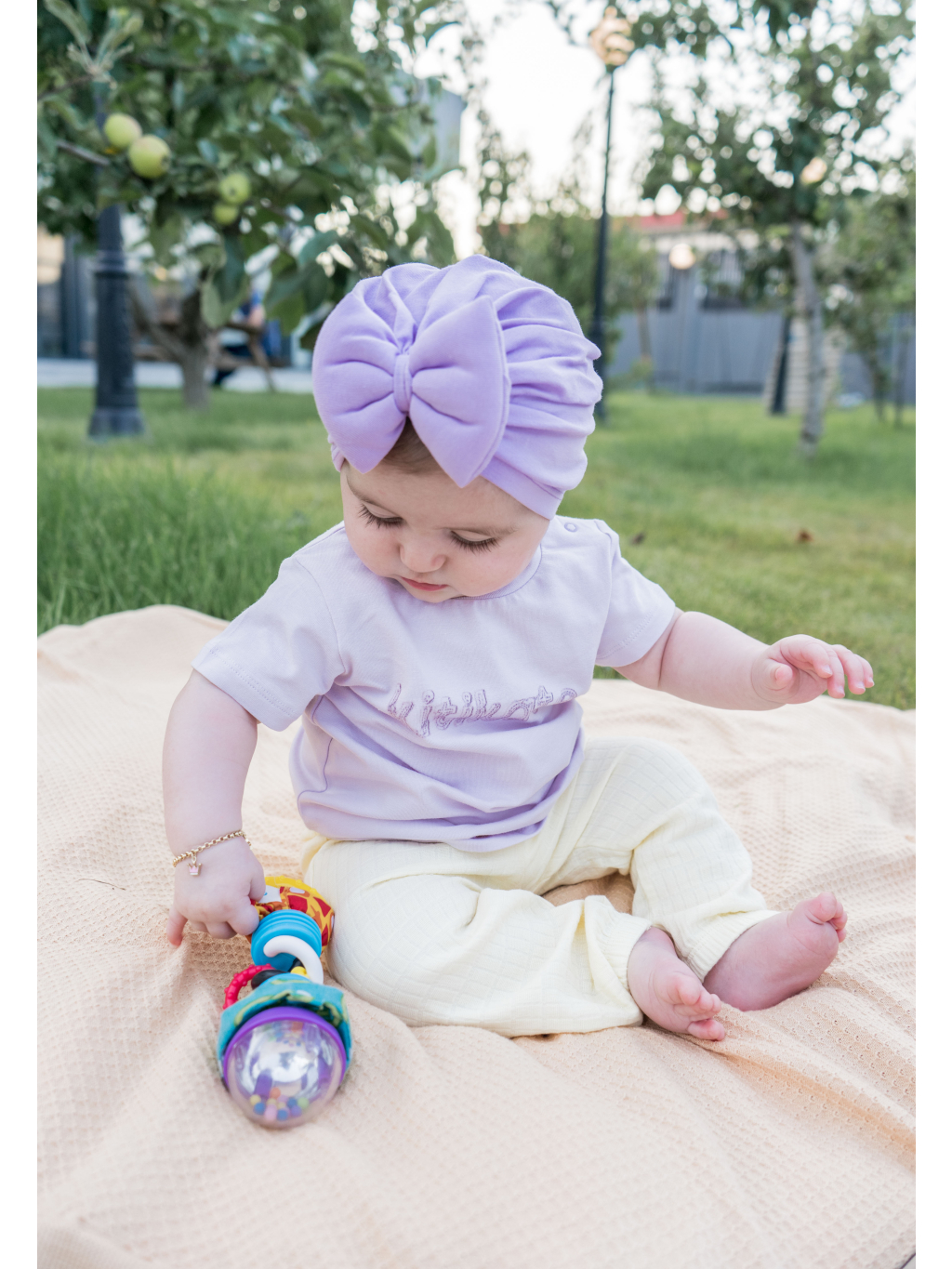 Turbánek s mašlí pro holčičky od 0 do 12 měsíců, v několika pastelových barvách.