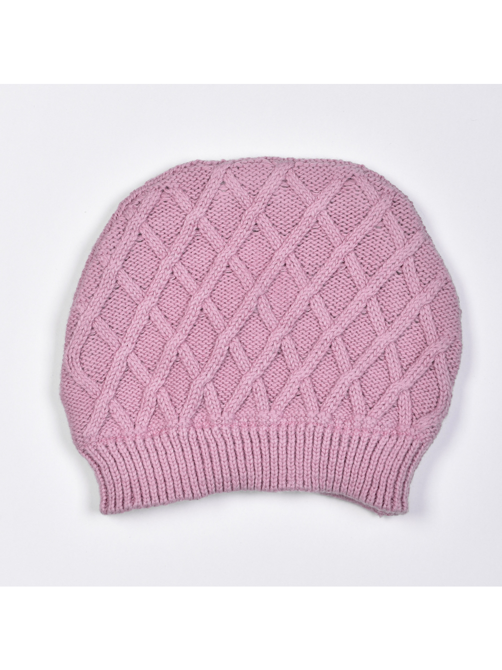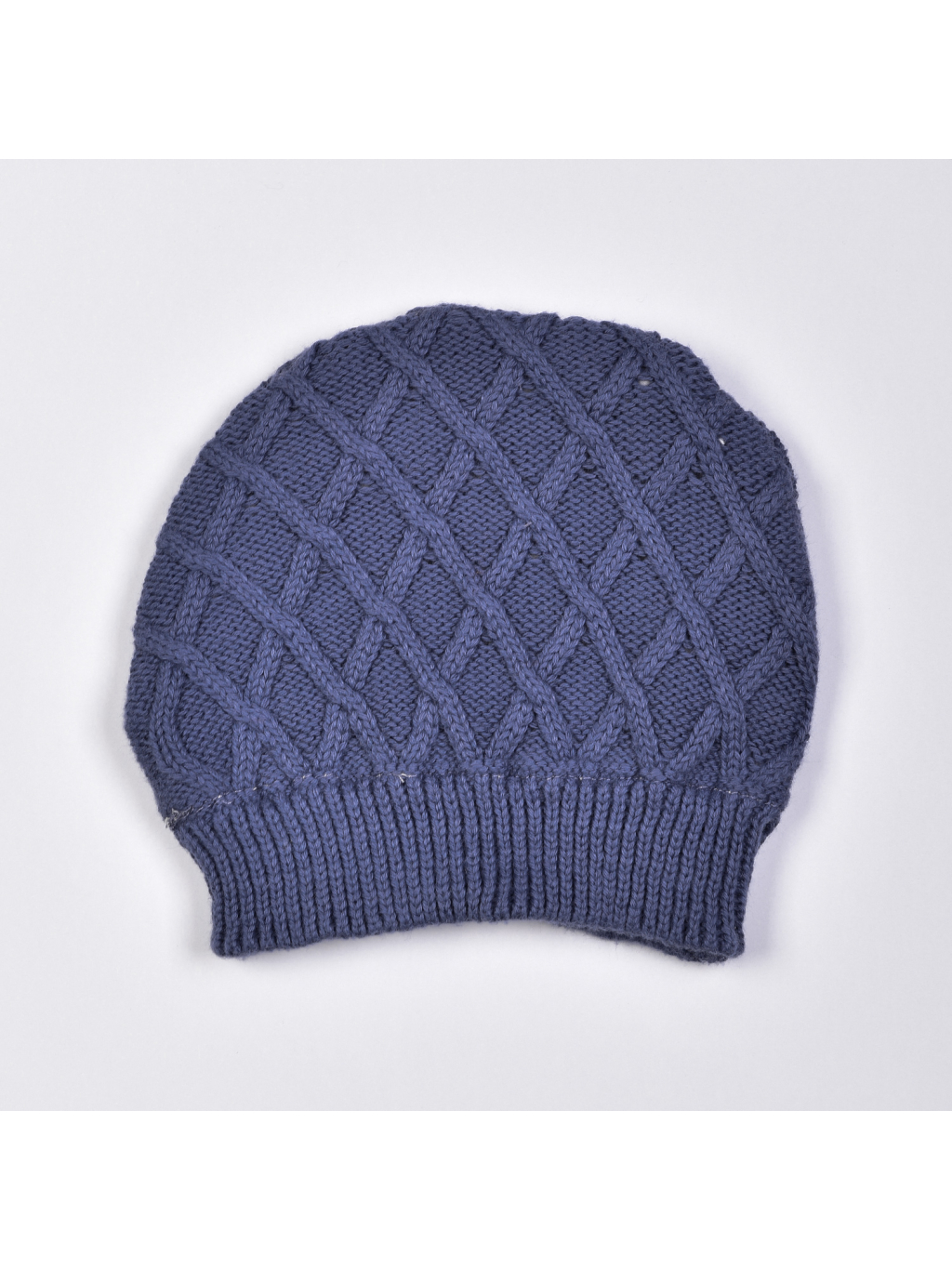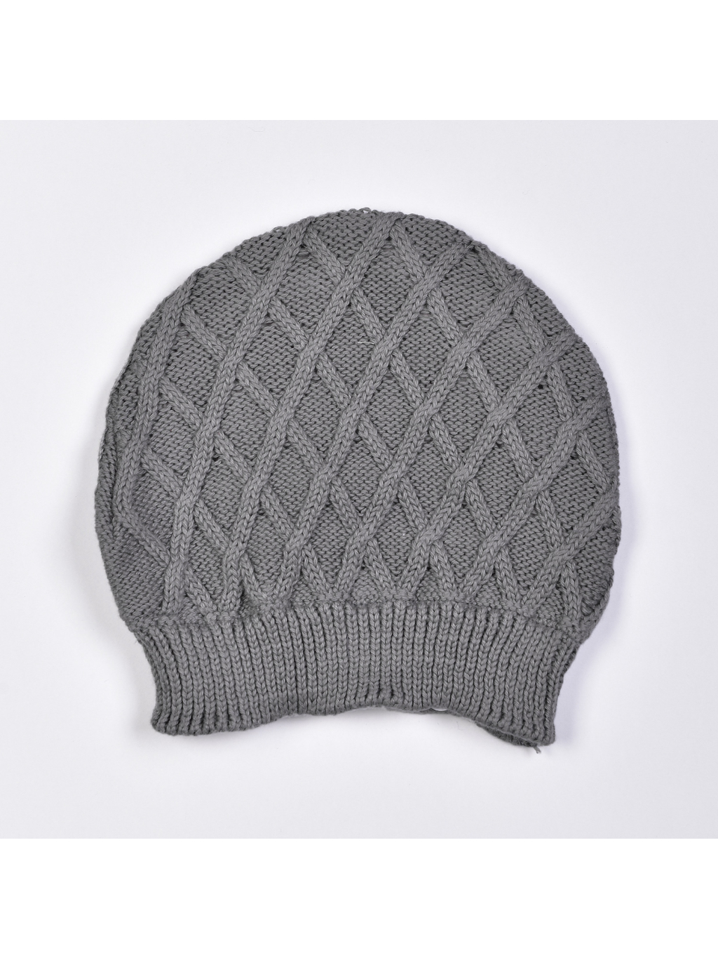 Zimní pletená čepička s bočním švem a plastickým vzorem se vyrábí ve dvou velikostech a několika barvách.