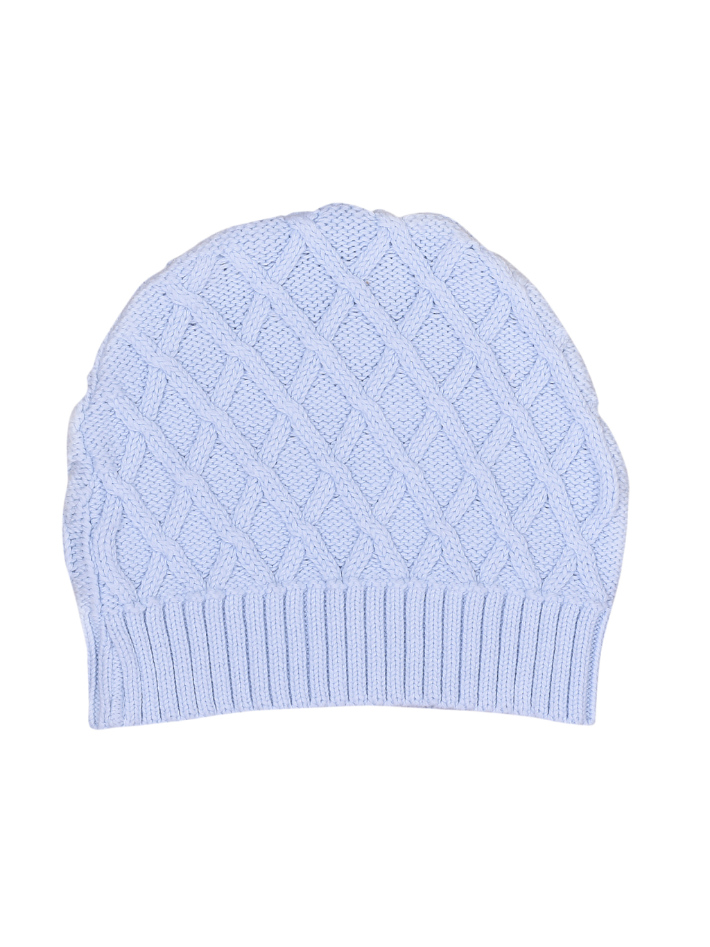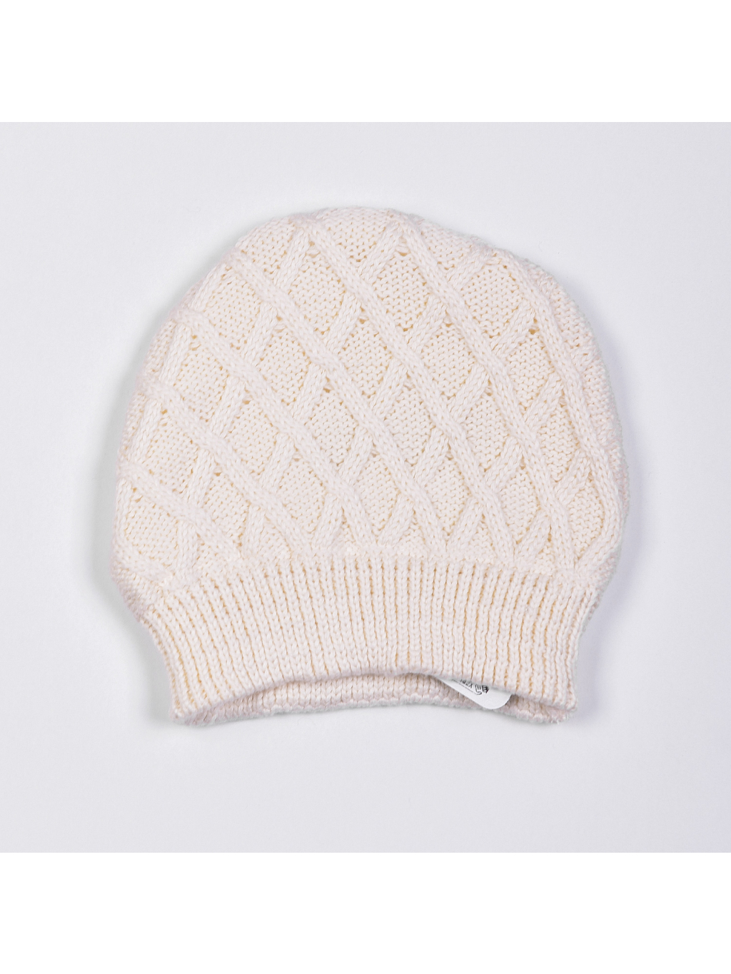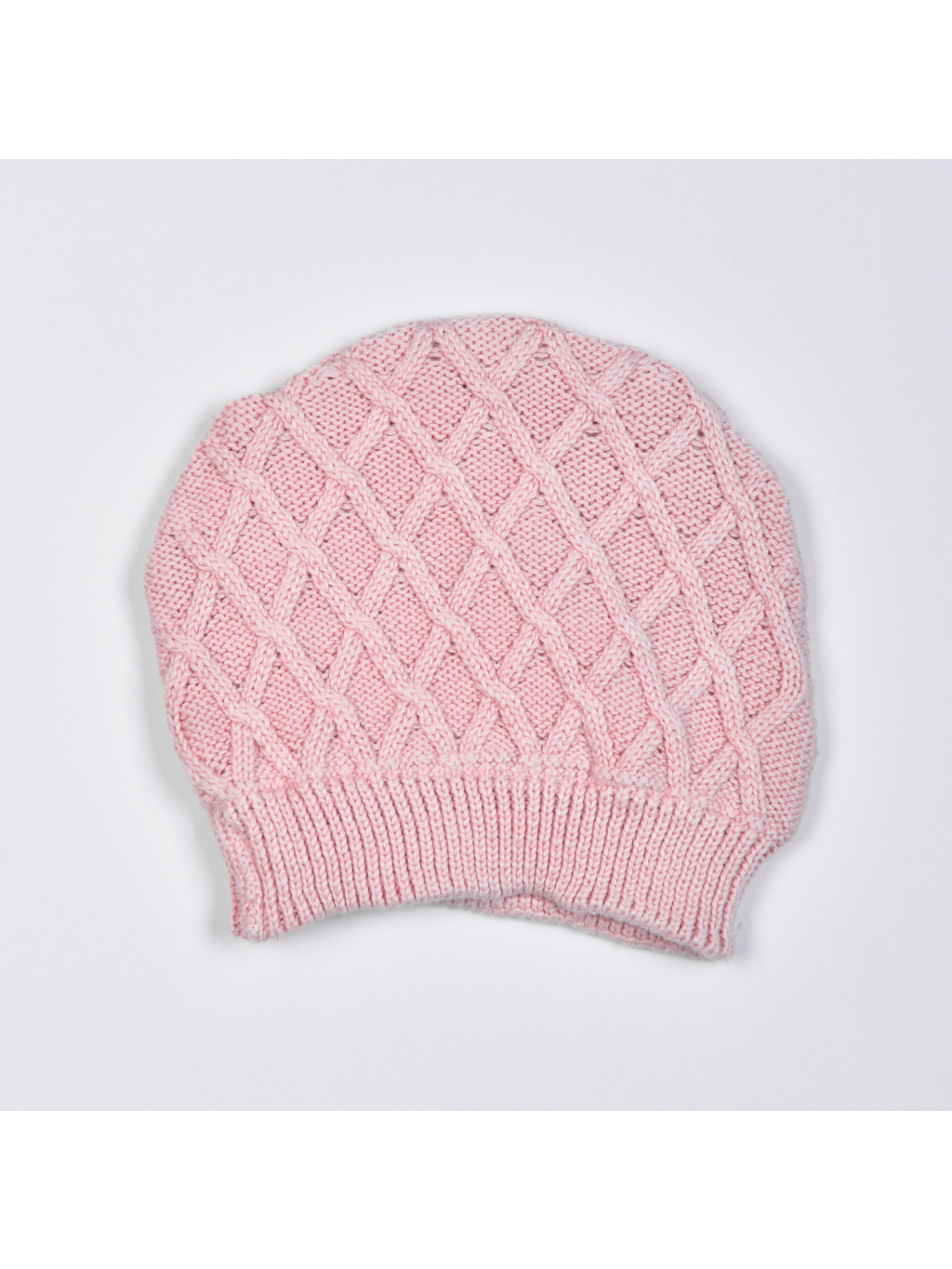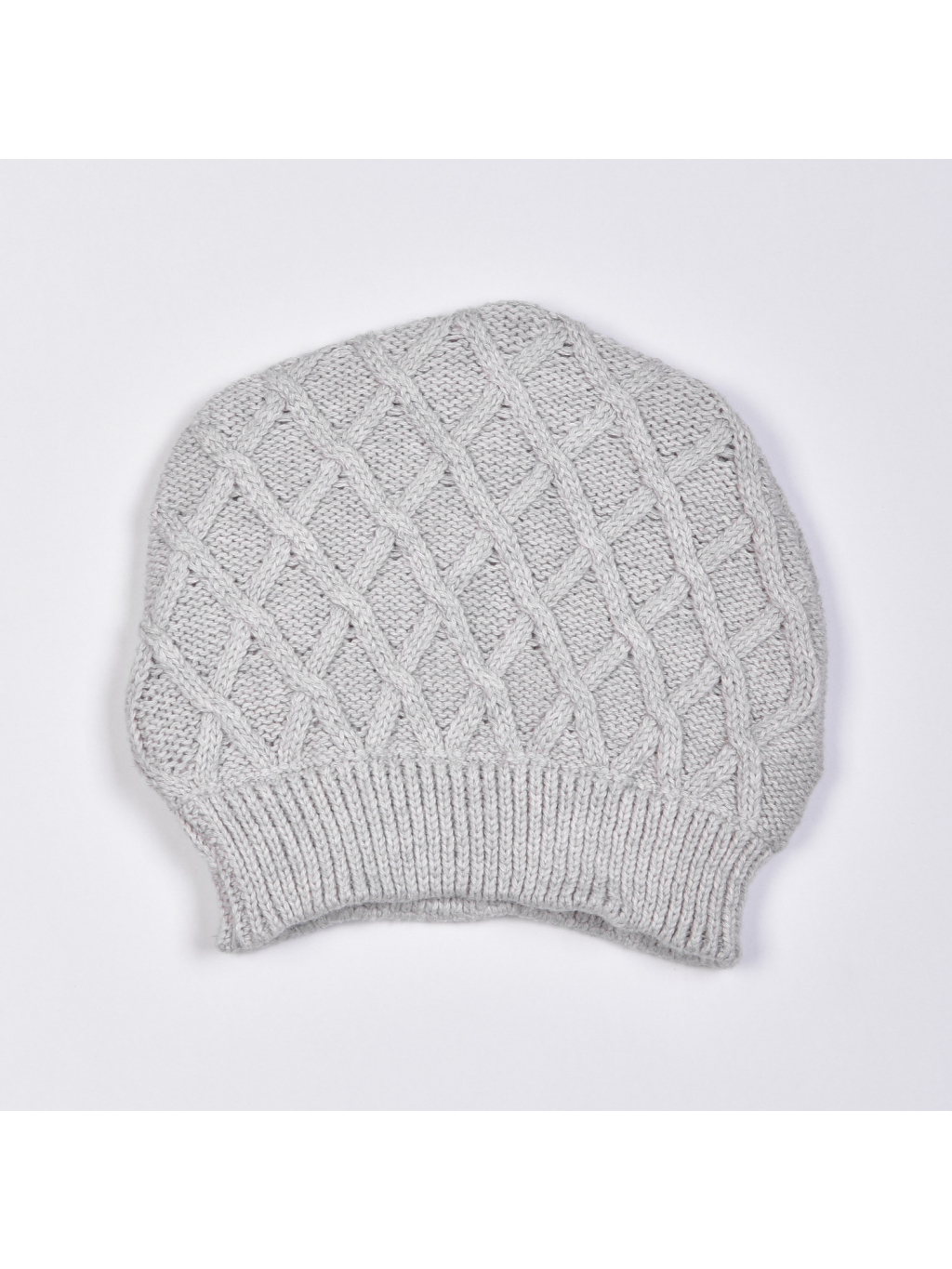 Zimní pletená čepička s bočním švem a plastickým vzorem se vyrábí ve dvou velikostech a několika barvách.