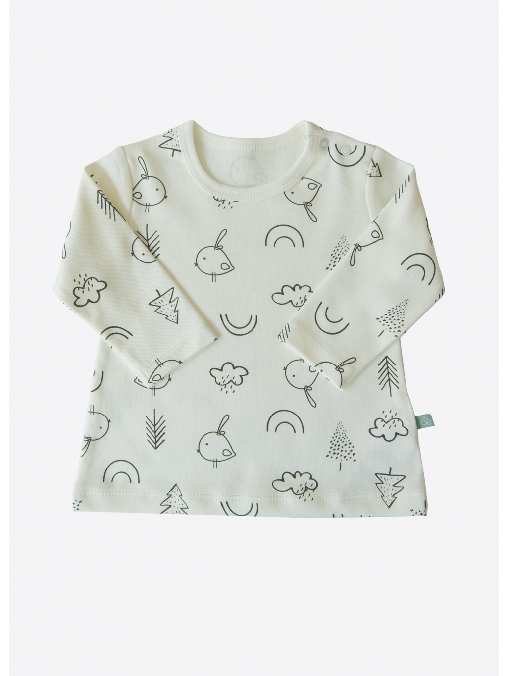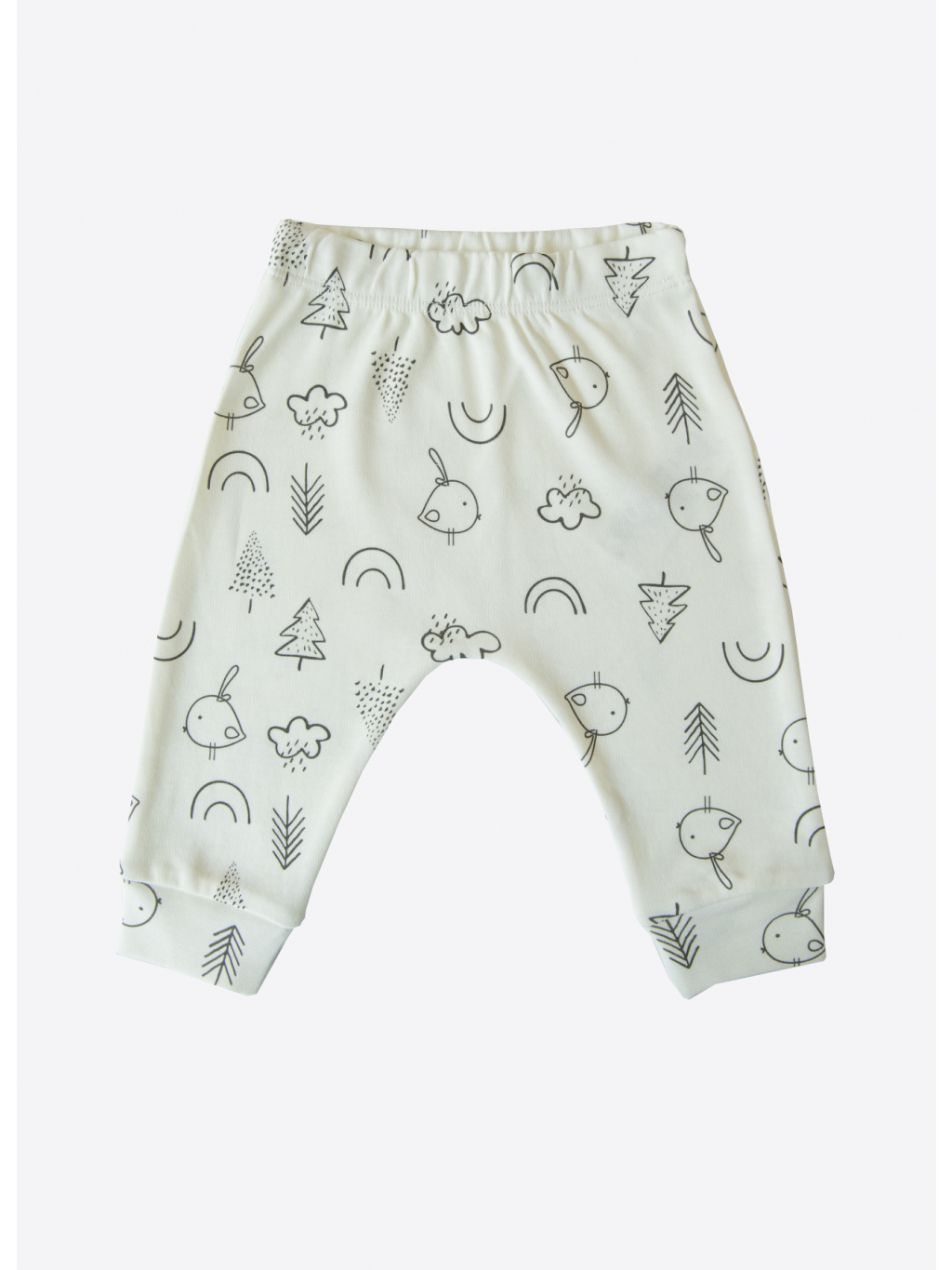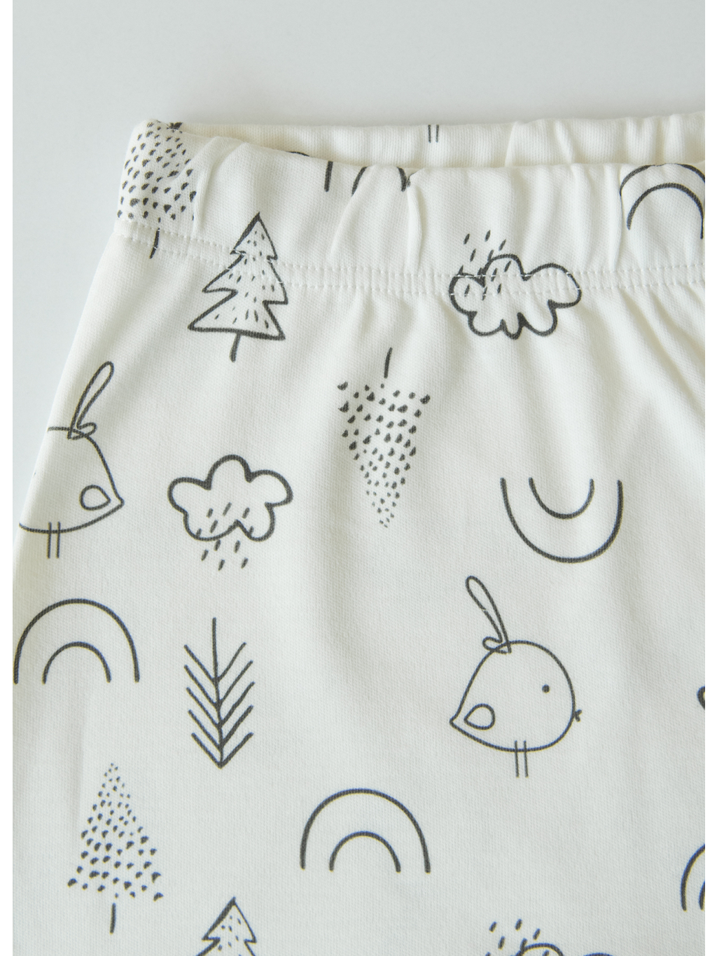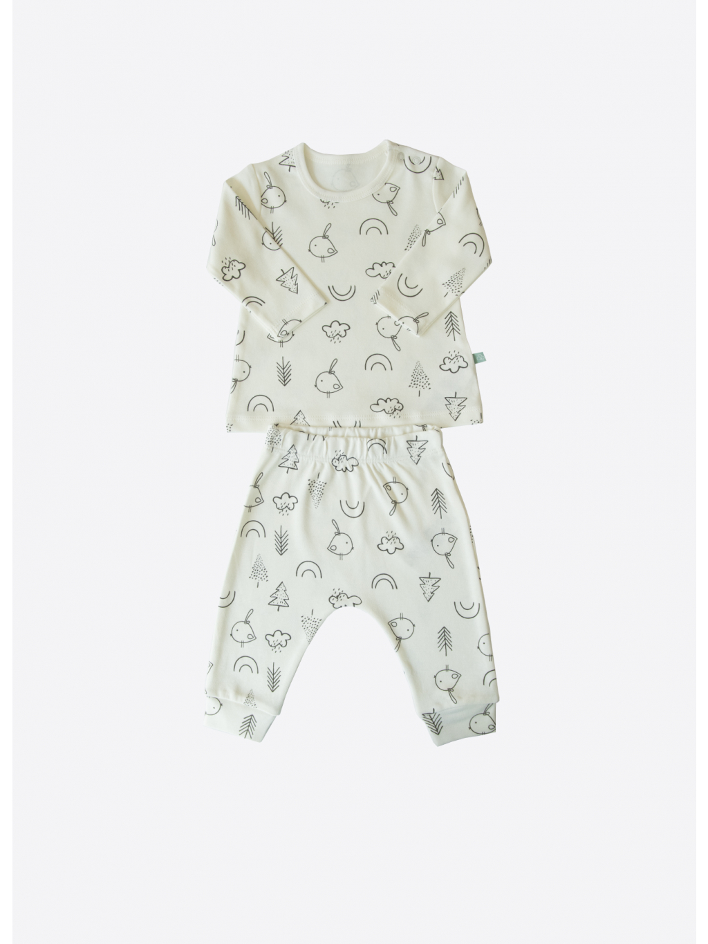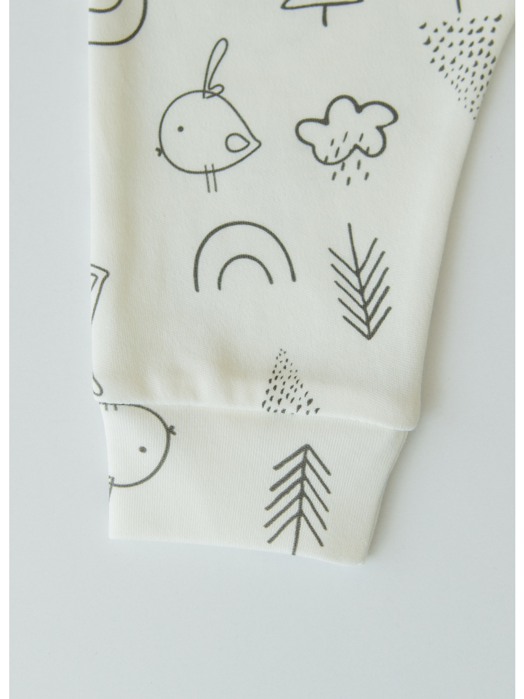 Dvoudílná souprava se skládá z mikinky a tepláčků v bílé barvě s potiskem ptáčků.