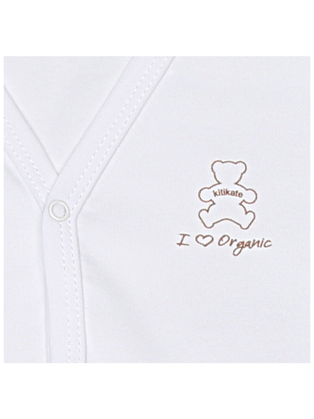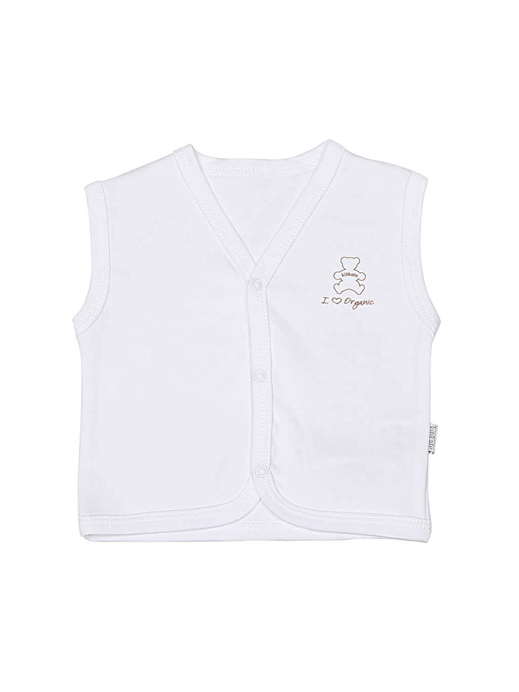 Zapíná se na patentky a je ozdobena jen jednoduchou siluetou medvídka a nápisem I Love Organic.