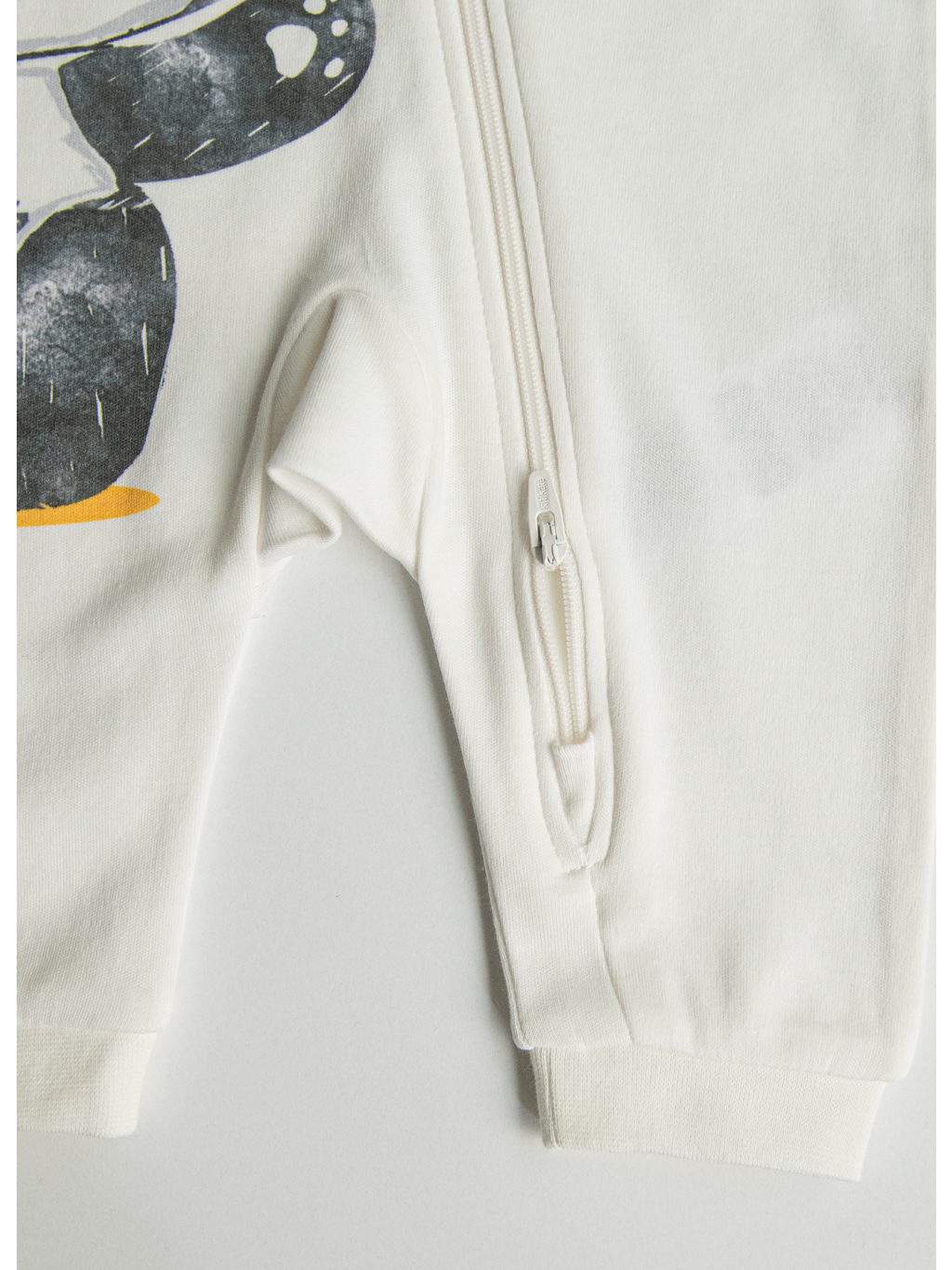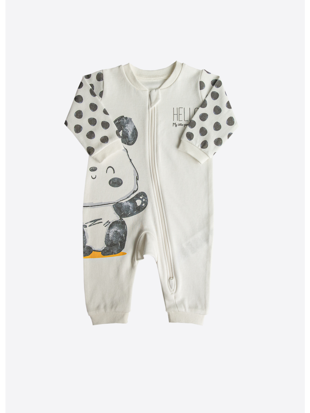 Kojenecký overal z kolekce panda se zapínáním na zip po celé délce až do nohavičky. Zip má chránič brady a nohavičky jsou dole otevřené.🧸👶
