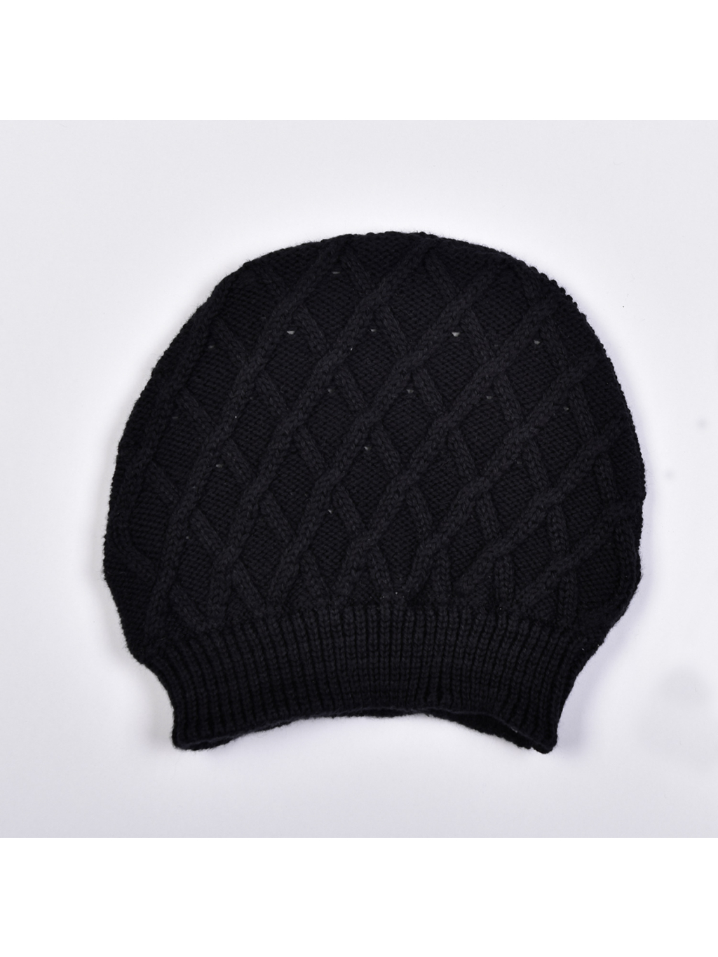 Zimní pletená čepička s bočním švem a plastickým vzorem se vyrábí ve dvou velikostech a několika barvách.