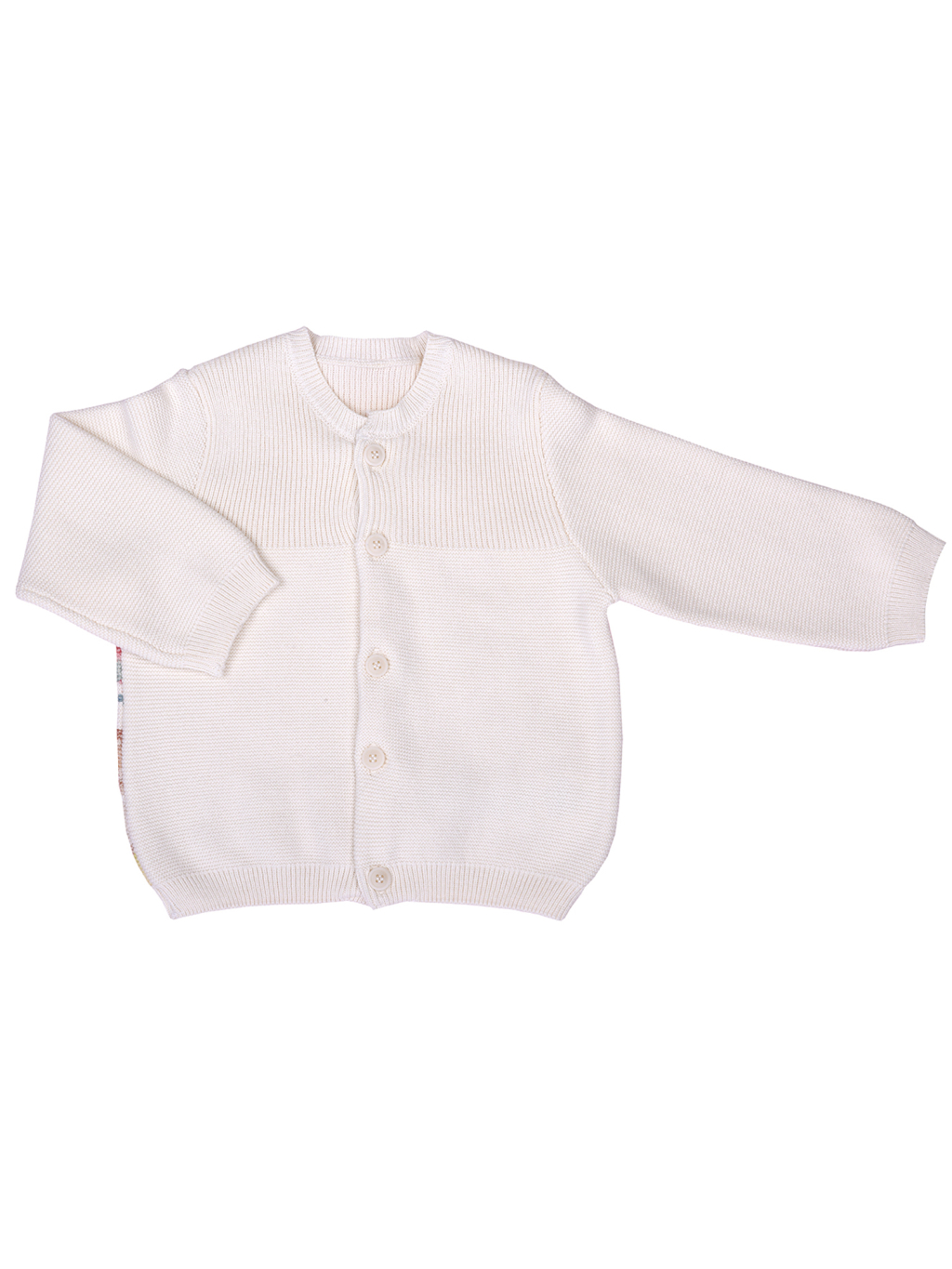 Dívčí celopropínací svetřík se vyrábí ve smetanové, krémové a růžové barvě.