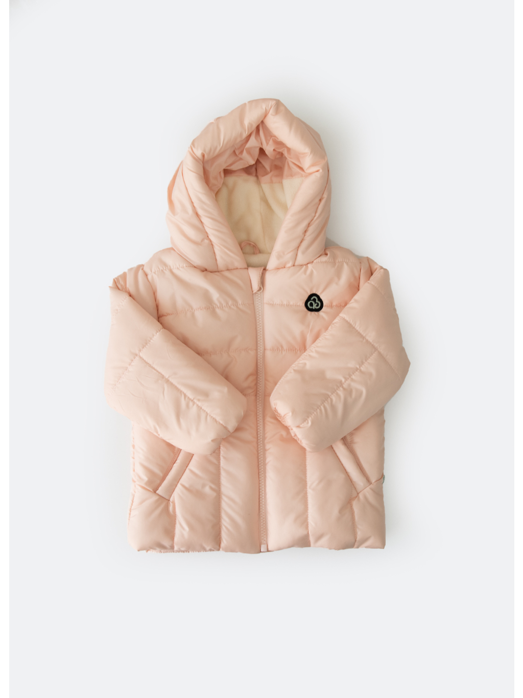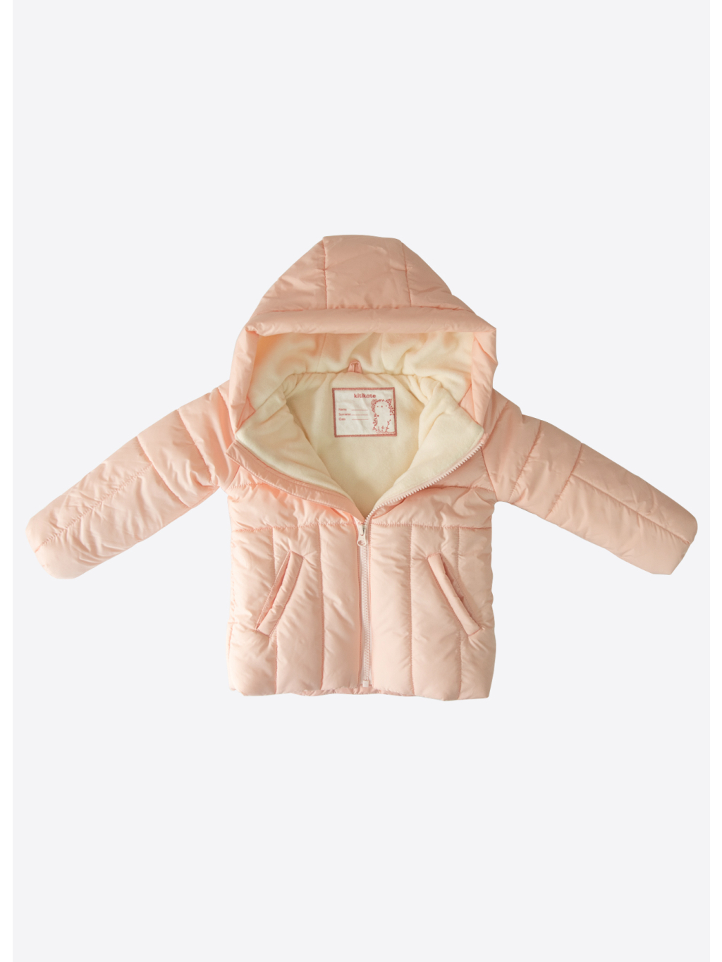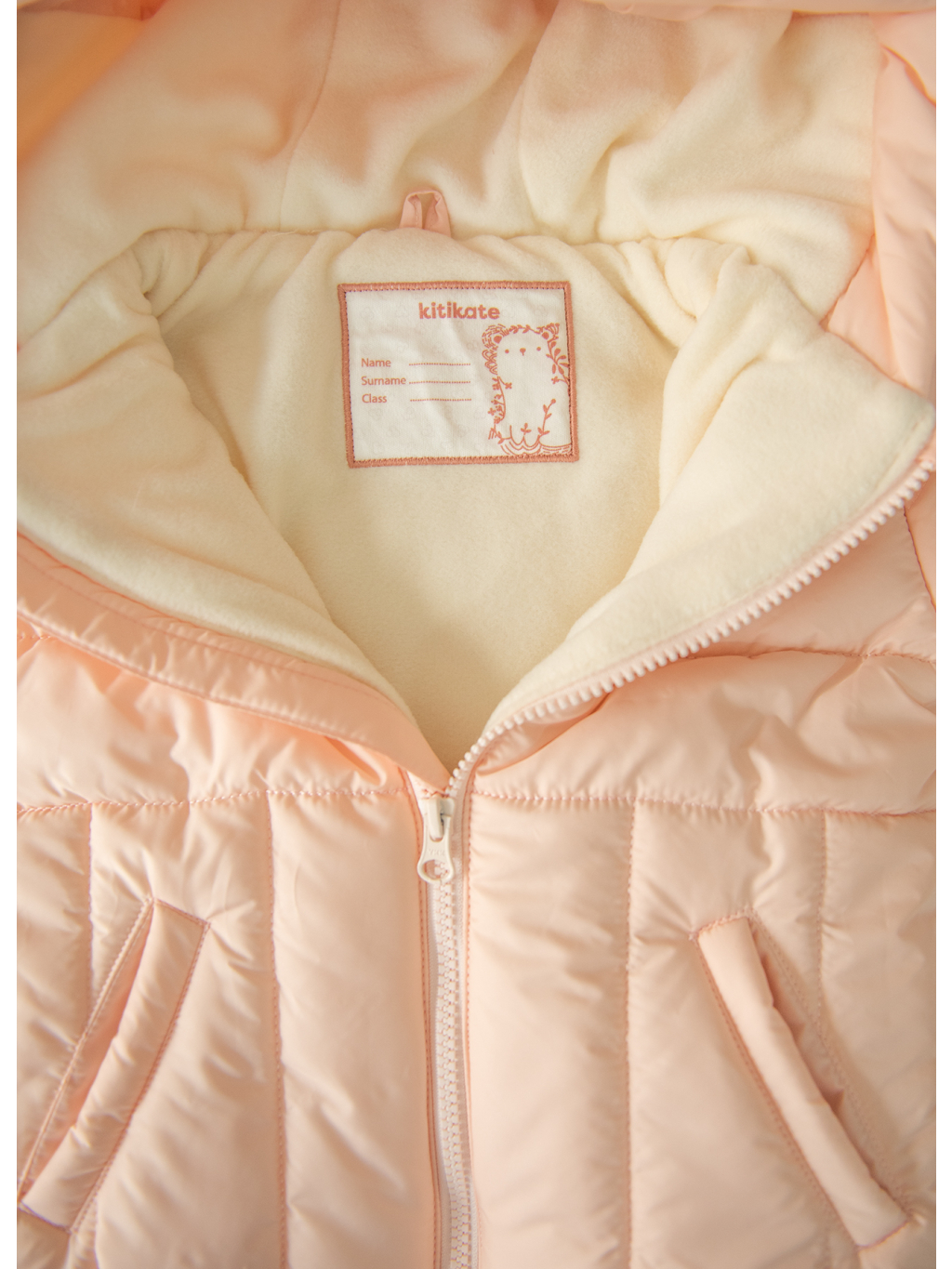 Dětská prošívaná bunda s kapucí a zapínáním na zip.