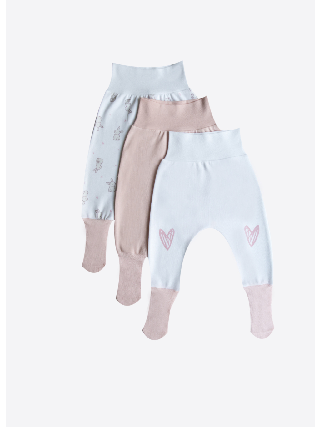 3 Dílná sada kojeneckých polodupaček s motivem králíčka v růžové barvě.