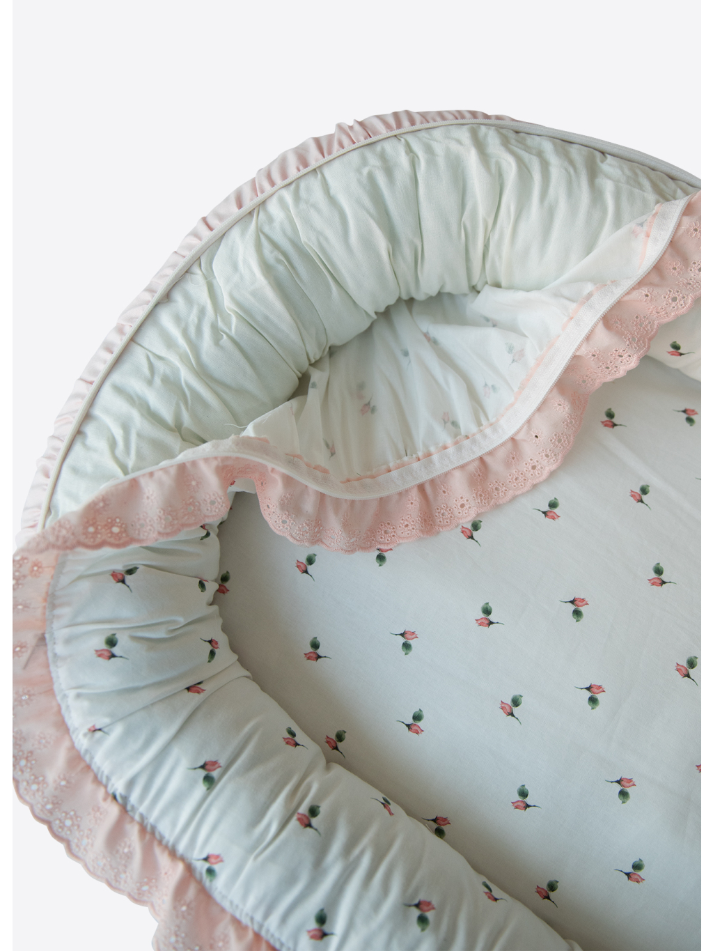 Hnízdečko je lehké, snadno přenosné a praktické i na cesty. Díky vyvýšeným okrajům zajišťuje miminku ochranu před převalením nebo kontaktem s tvrdým povrchem.