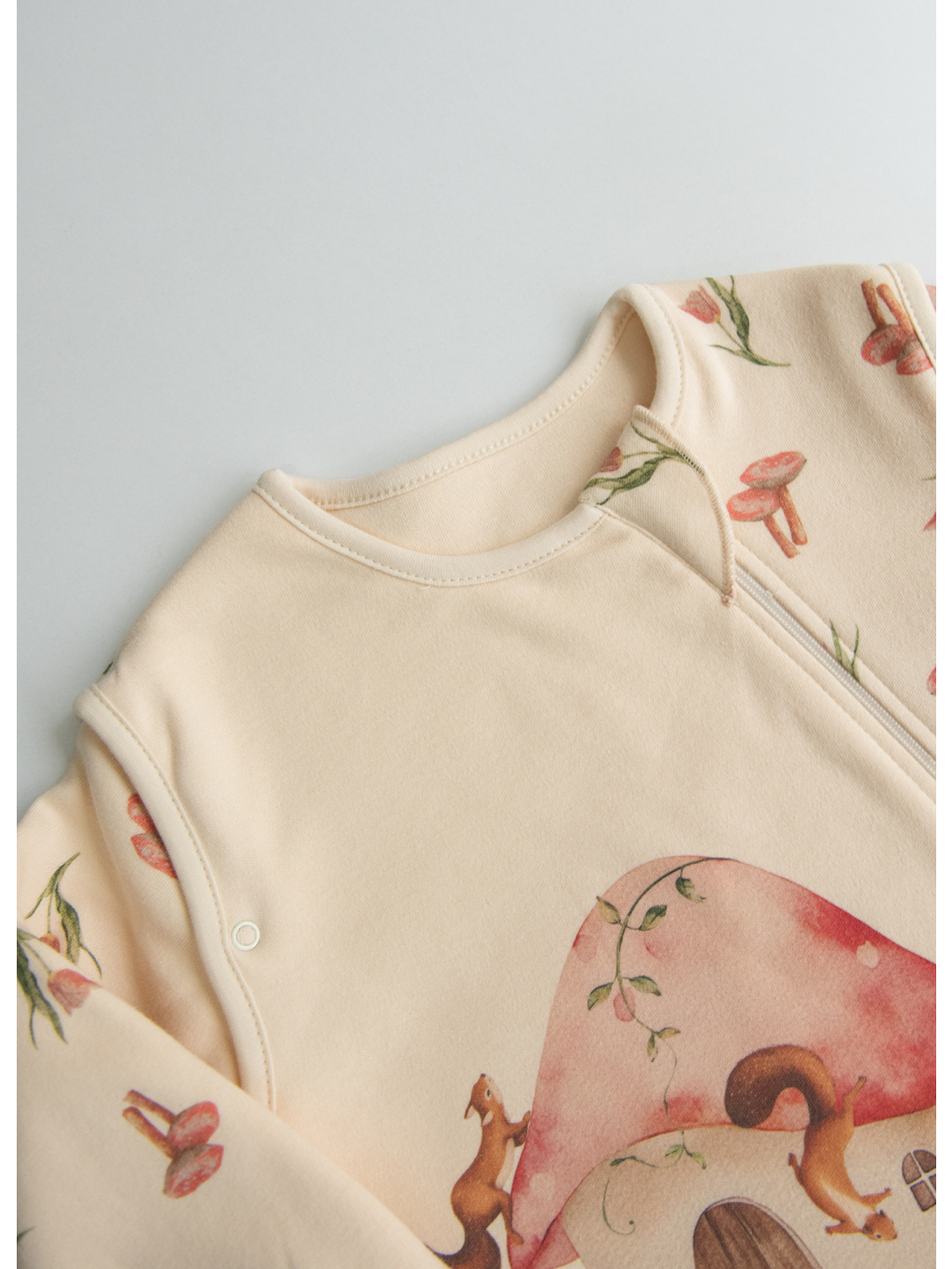 Díky vnitřní i vnější vrstvě ze 100% organické bavlny je šetrný k dětské pokožce, zatímco výplň z polyesterového vlákna poskytuje lehkou hřejivost. Hodnota 1,5 TOG udržuje miminko v ideální teplotě a pomáhá předcházet přehřátí.